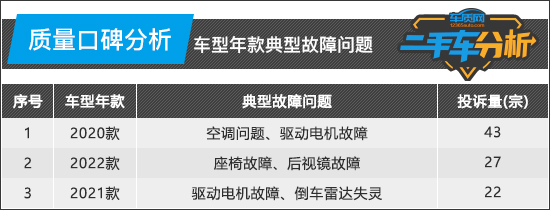 消费者在选择二手车时往往会忽视“原车制造质量”因素,但实际上这是在选择二手车时一项非常重要的指标。为此,车质网基于大量真实车主投诉,通过专业数据分析,对小鹏P7进行质量评估,从中找出可能存在的批次性质量缺陷,为消费者提供更为直接有效的参考信息。