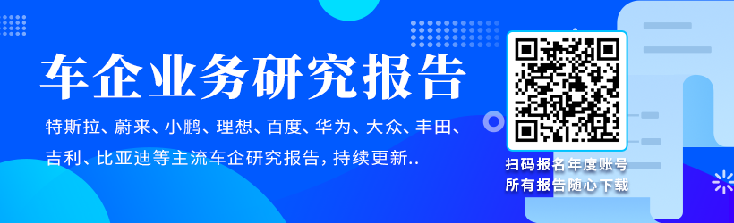 《车企业务研究报告》含:特斯拉、蔚来、小鹏、理想、百度、华为、大众、丰田、吉利、比亚迪等主流车企研究报告。获取方式如下: