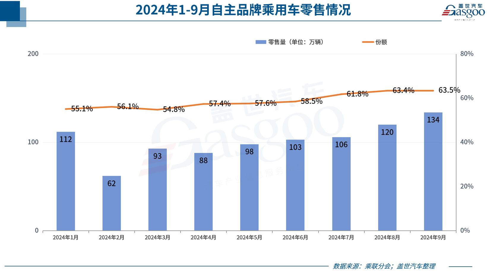至此,今年前9月自主品牌累计份额已来到了59%的高度,较去年同期增长8.1个百分点。