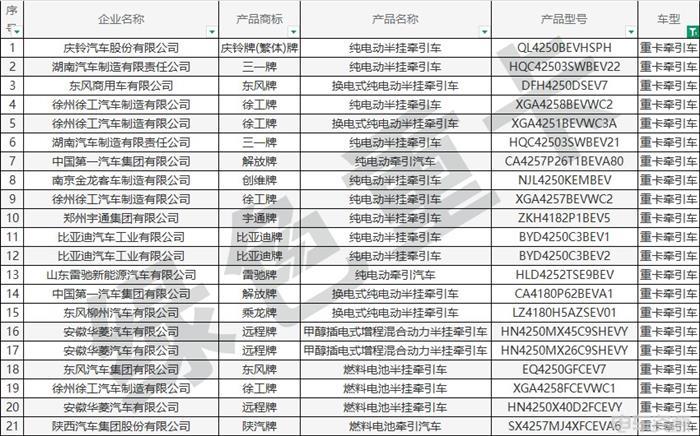 393批新车公示一共有150款新能源重卡车型 充电车型占七成